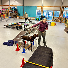 Degility® ist eine Kombination aus Agility, Mobility, Gerätetraining, Bodenarbeit, Konzentrationstraining und Bindungsarbeit. Es bietet vom "einfachen" Fun-Parcours bis hin zu sehr anspruchsvollen Übungen an den verschiedensten Geräten wie zB dem Labyrinth, Wackel-Dackel, Strickleiter und allerlei sonstigen herausfordernden und wackeligen Stationen mit unterschiedlichem Schwierigkeitsgrad eine enorme Bandbreite an Bewegungs- und Beschäftigungsmöglichkeiten. Durch die vielfältigen Gestaltungsmöglichkeiten und Aufgabenstellungen innerhalb der einzelnen Bewegungselemente stellt Degility® eine kreative Herausforderung für Körper und Geist dar. Anders als zum Beispiel beim Agility steht beim Degility® nicht der sportliche Ehrgeiz im Vordergrund. Beim Degility geht es um Ruhe, Genauigkeit, Körperspannung und Konzentration. Und durch die überwiegend nonverbalen Kommunikation im Parcours ist es eine tolle Bindungsarbeit zwischen Mensch & Hund. Diese Form der Bindungsarbeit ist ausgesprochen wertvoll und erfreut sich seit 2006 großer Beliebtheit, denn: Degility bietet noch mehr…. Degility® fördert zudem den Gleichgewichtssinn, die Motorik, den Muskelaufbau und -erhalt, die Koordination sowie Selbstbewusstsein und -vertrauen des Hundes. Beim Degility® geht es nicht um höher, schneller, weiter und auch nicht um spektakuläre oder waghalsige Geräte! Vielmehr geht es um die Bindung zwischen Mensch und Hund, den sinnvollen Mehrwert den der Hund durch diese großartige Beschäftigungsmöglichkeit erfährt, sowie den Fokus auf die physiologischen Gesichtspunkte des Muskelerhalts, -aufbaus, und -stärkung. Inhalt und Ablauf des Degility® Einsteiger-Workshops: - Max. 6 Mensch-Hund-Teams (Mindestteilnehmerzahl: 4) - Dauer: ca. 4 Stunden - Theoretische Grundlagen - Einführung in die nonverbale Kommunikation während des Parcours - Kennenlernen und Erarbeiten der Basic-Geräte Für die Teilnahme ist ein gut sitzendes Geschirr notwendig! Nach dem Einsteiger Workshop kann in einer unserer fortlaufenden Degilitygruppen eingestiegen und weiter trainiert werden. Voraussetzungen zur Teilnahme: -keine Aggressionsthematiken mit ernsthaften Verletzungsabsichten -Vorerkrankte/gehandicapte Hunde nur nach Absprache mit Tierarzt bzw. Physiotherapeuten -Mindestalter: 4 Monate -Hundehalter-Haftpflichtversicherung -Impfungen/Grundimmunisierung (dem Alter entsprechend) laut StIKo Vet